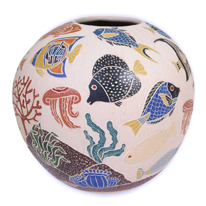 Wonderful bats and flowers adorn this beautiful olla by Mata Oritz artist Adrian Corona. All around the pot, a...
