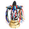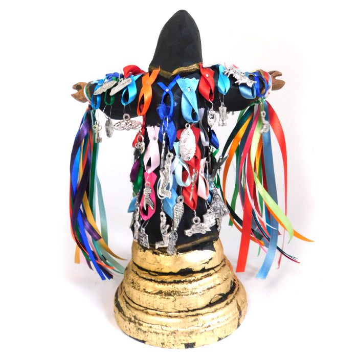 Beautiful hand made wood Saint Charbel figure with milagros and ribbons.