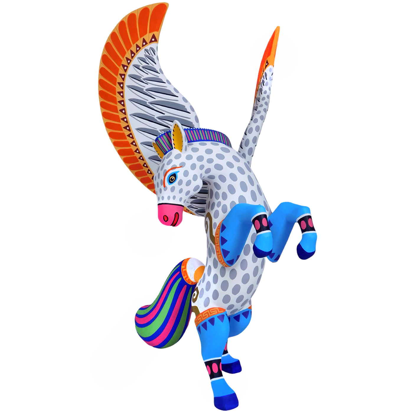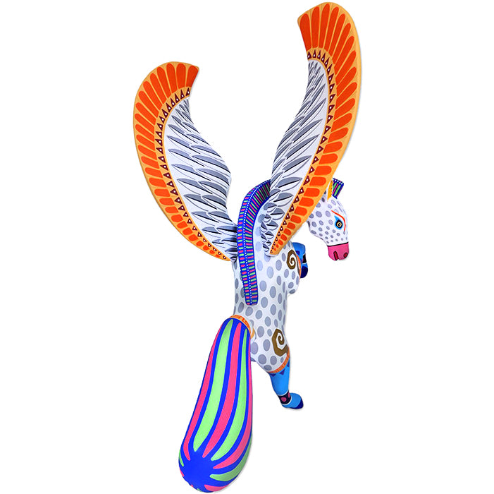 Luis Pablo is considered one of the top wood carving artists in Oaxaca. This time Luis Pablo created a magnificent tall Pegasus carving.