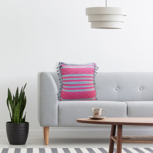 Elegant handwoven cushions from Santo Tomas Jalieza in Oaxaca. Jalieza is a small town dedicated to the art of handwoven pieces. It is 25 miles of the City of Oaxaca. This cotton cushion is woven using the ancestral telar de cintura, back-strap weaving loom method.