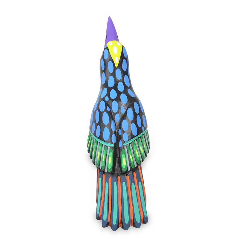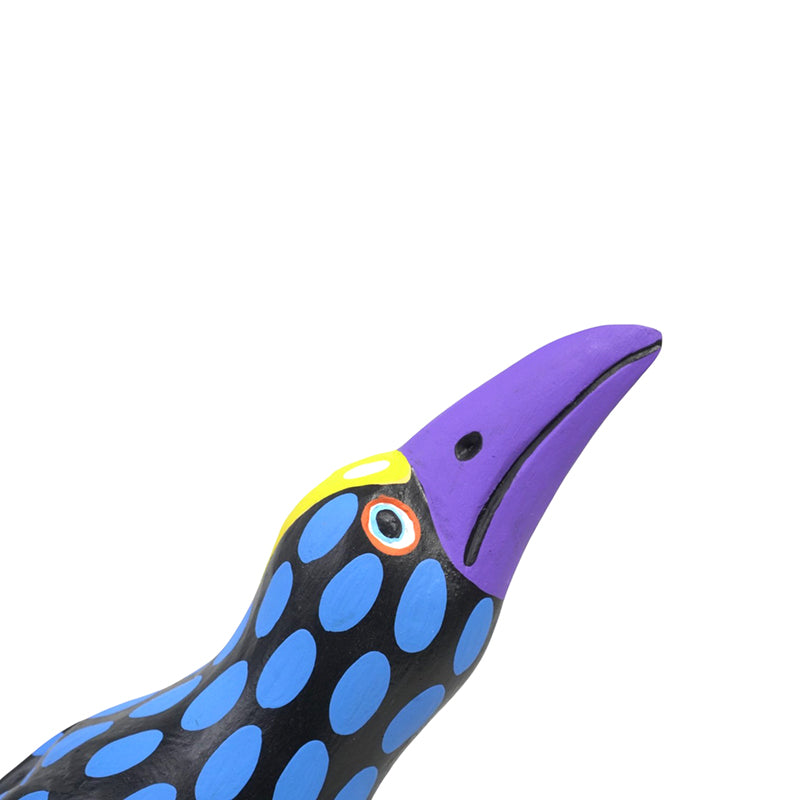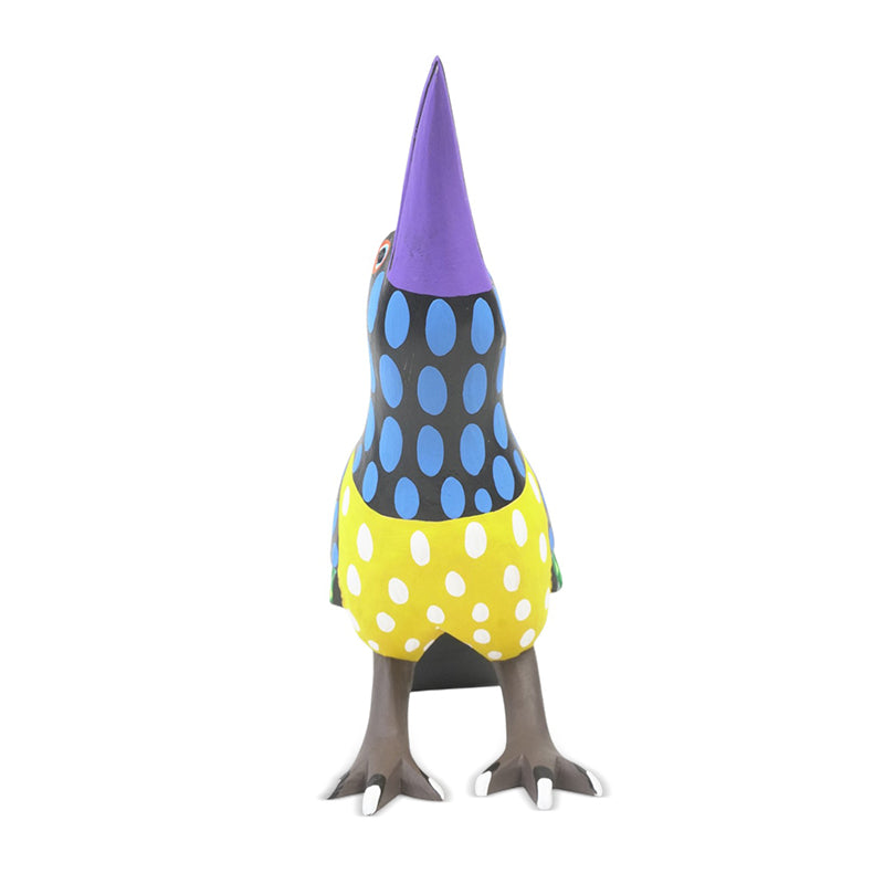 Crows have always loved having their passionate fans — those who truly admire their attitude, intelligence, and impeccable taste. Armando Jimenez's crow is thoughtfully designed just for them. Its body boasts a sleek jet black with cheerful blue polka dots, a bright yellow chest, a graceful purple beak, and tail feathers decorated with lively stripes of teal, orange, and green.