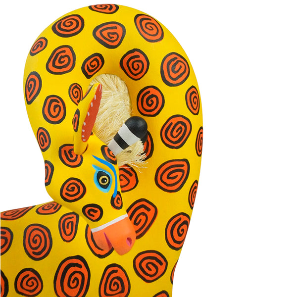 Stunning giraffe by top Oaxacan Oaxaca artist Luis Pablo. The giraffe is a one-piece carving, and its ears and horns are removable. This spectacular giraffe is a testament to his incredible talent and creativity and is one of his most admired designs.