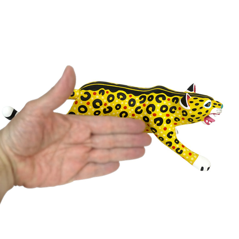 Big cats have long been symbols of strength and guardianship in Mexican tradition, and this piece carries that spirit in a very joyful way. It’s a striking, easy-to-place carving that brings movement, color, and a touch of wild energy to any corner of the home.