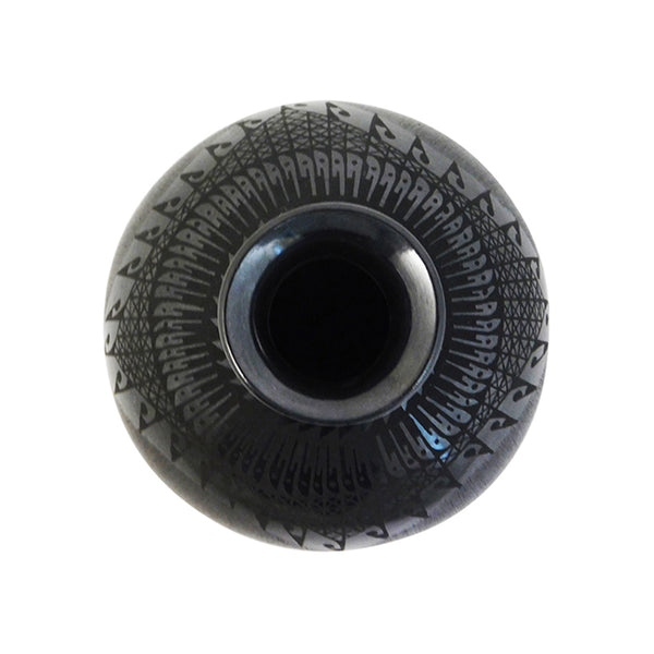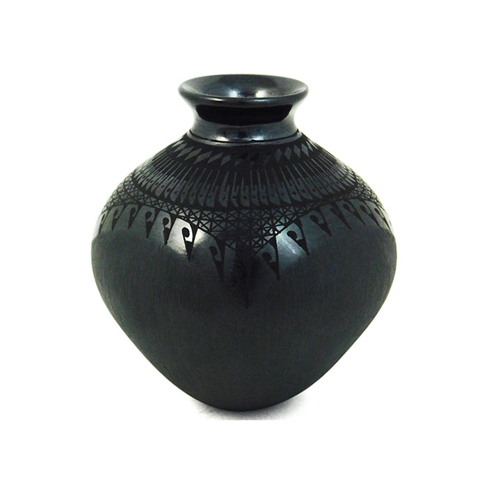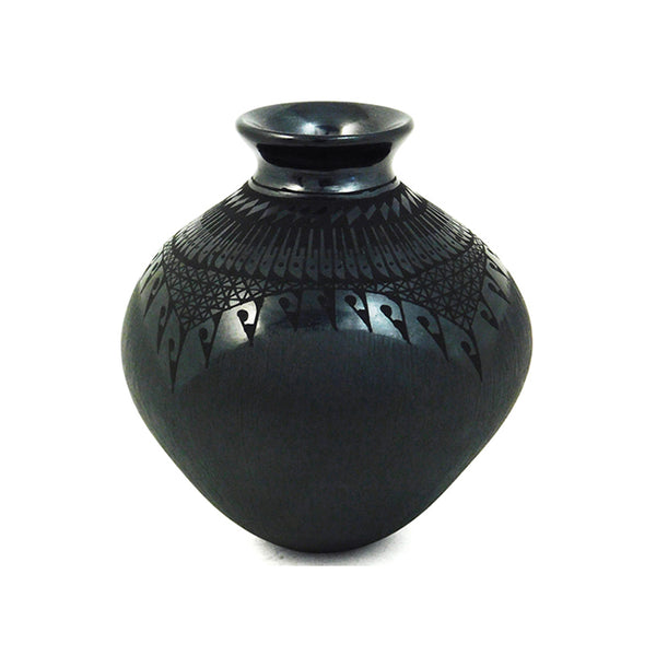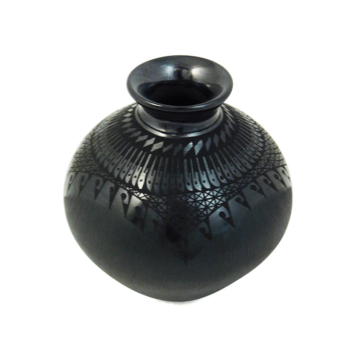 This striking Mata Ortiz olla by Tavo Silveira combines bold architecture-inspired design with exquisite fine-line painting. The elegant...